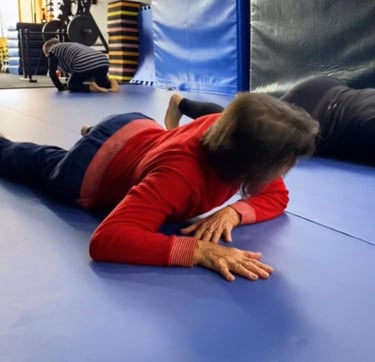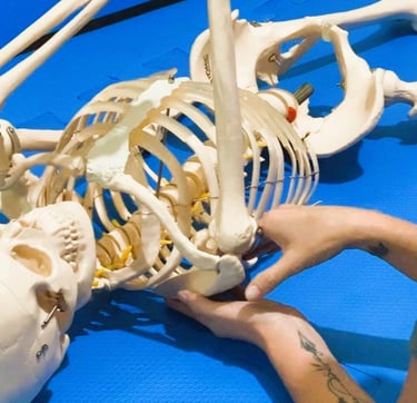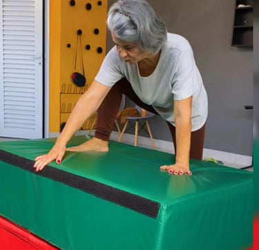 Os movimentos propostos em aula buscam atender a individualidade (do aluno), seguindo progressões que vão desde uma movimentação considerada mais simples para mais complexa, à medida que a pessoa vai melhorando sua organização estrutural, força e compreensão do processo de reabilitação.